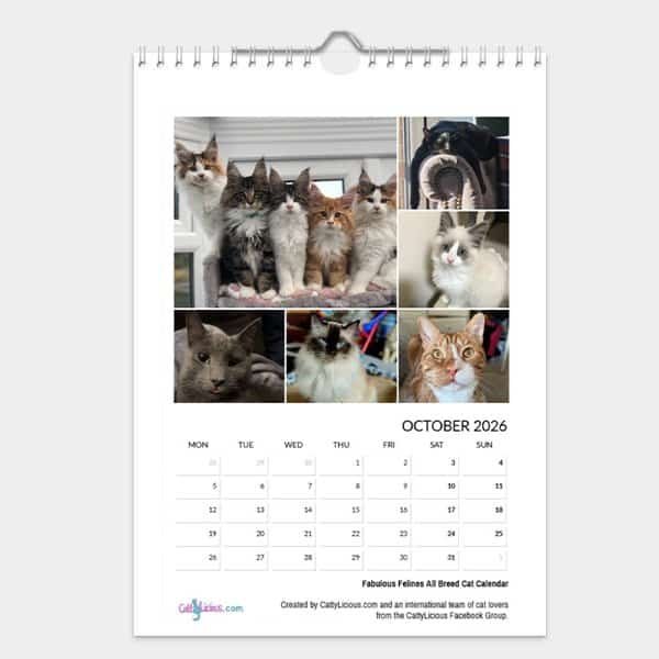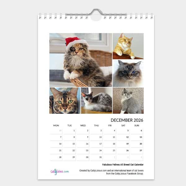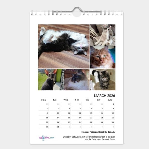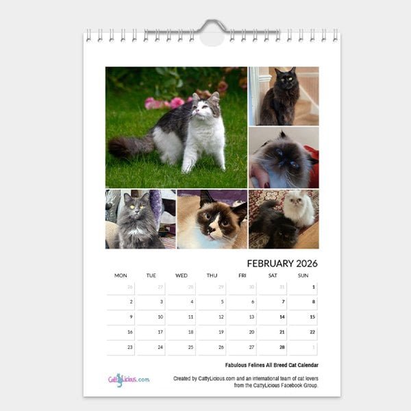 The all breed cat calendar has been created by an international team of cat lovers and designers to offer you a beautiful way of visualising each month. It uses premium quality photo paper so you can be assured that it will look amazing all year. The calendar has been designed with a lay flat design so it will hang naturally on your wall.