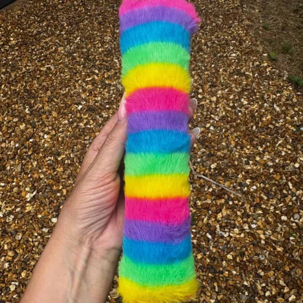 Brighten up your cat’s playtime with this colourful kicker toy. This rainbow kicker pillow is ideal for kicking and cuddling, also great as a chew toy for biting and nibbling, and a crinkle toy that rustles with every touch to spark your cat’s curiosity.