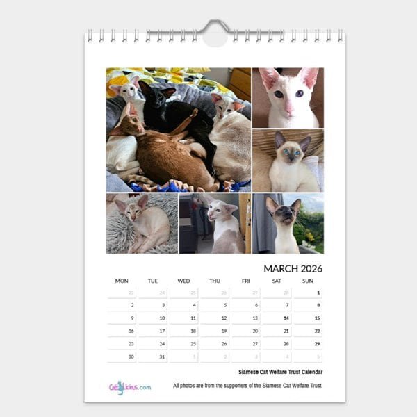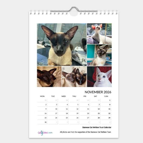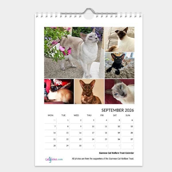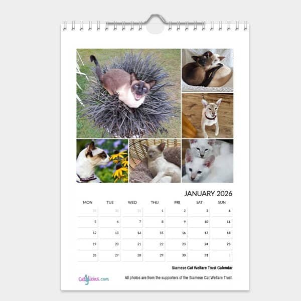 This stylish calendar combines a unique collection of some of the best professional quality photographs supplied by owners from around the world. Each month brings you six new Siamese cats and kittens to enjoy.
