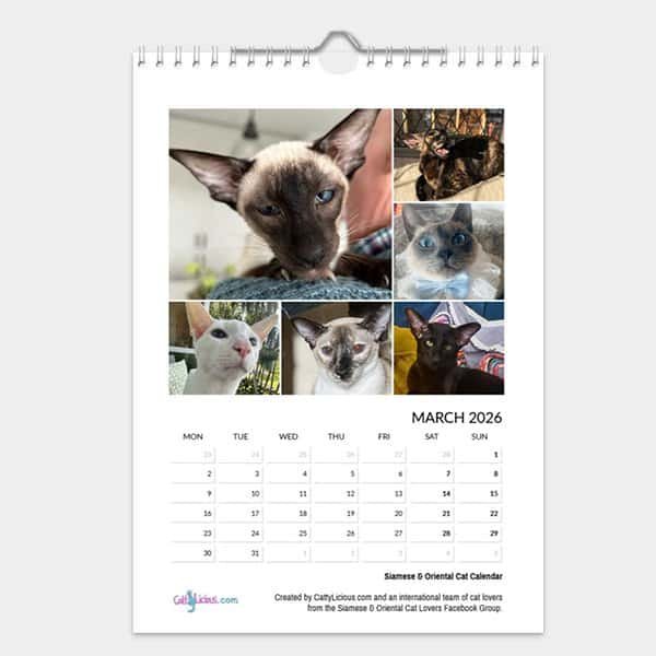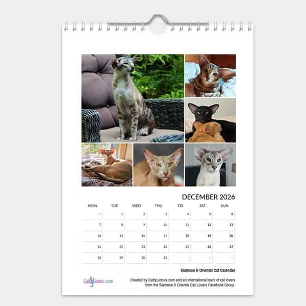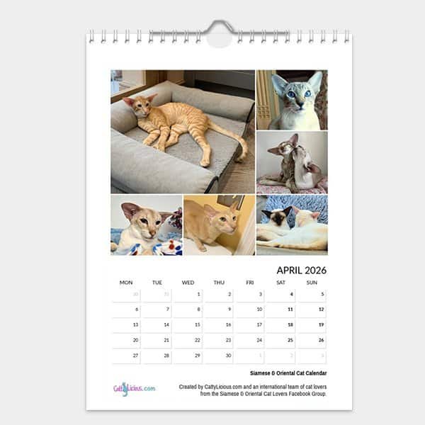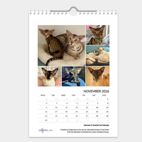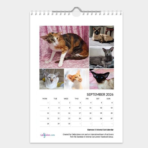 I am so pleased with my calendar. The photos are amazing and the overall quality is stunning. Would recommend to anyone who loves Siamese and Oriental cats. Thank you so much
